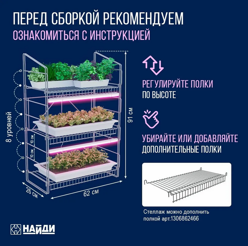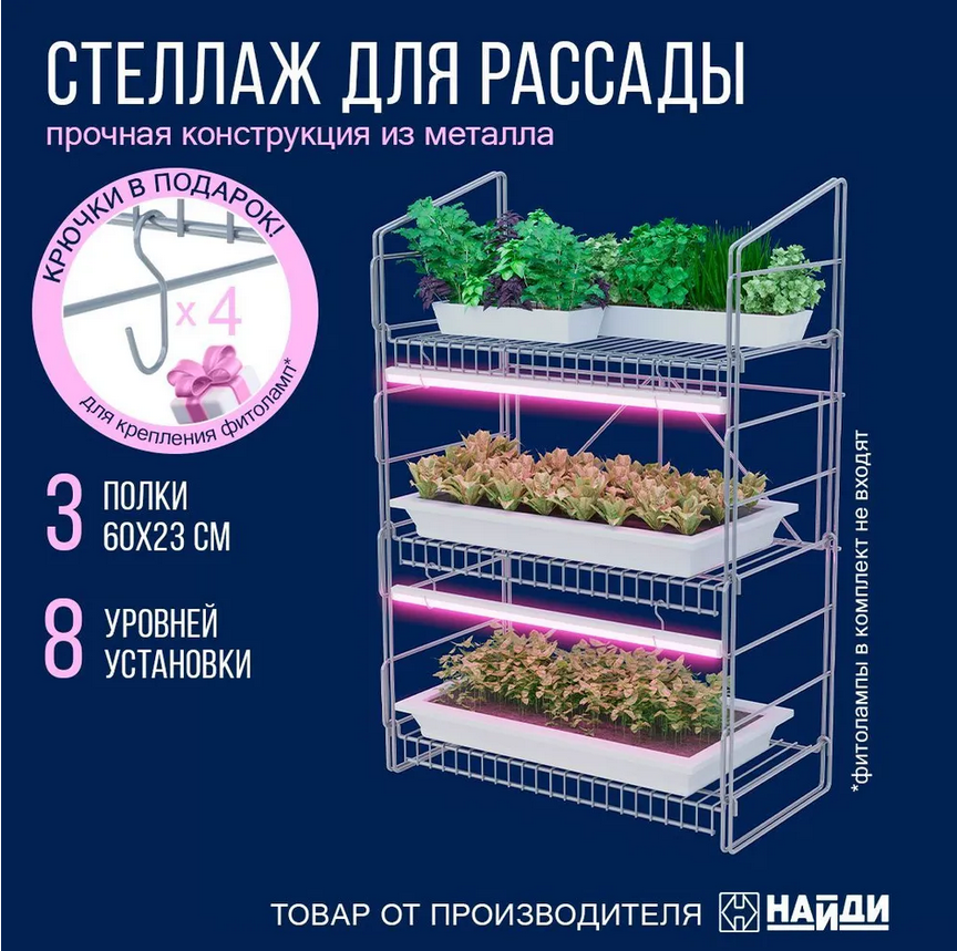 Стеллаж металлический для рассады и цветов Найди на подоконник, 26х62х91 см, серебристый для вашего садового участка с ценами, фото, характеристиками и описанием можно купить в интернет-магазине «Просто Полезно». |