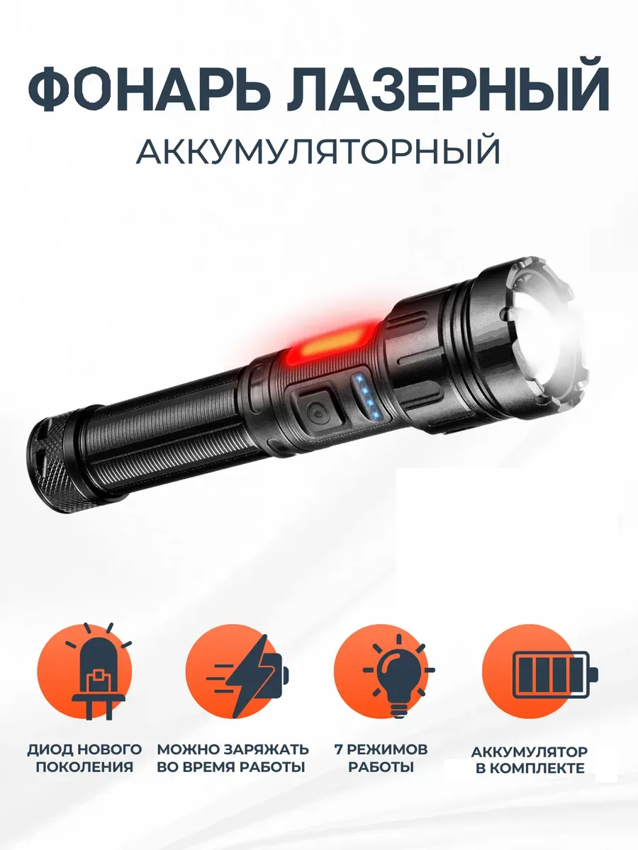 Наш интернет-магазин предлагает купить фонарь аккумуляторный светодиодный лазерный всего за 1090 руб.. Здесь вы найдете цены, описание, фото и характеристики.