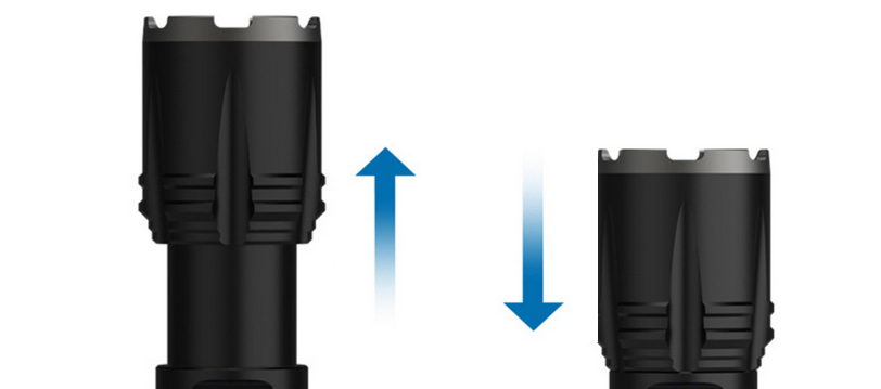 - Фокус луча можно изменить, выдвинув головную часть фонаря.