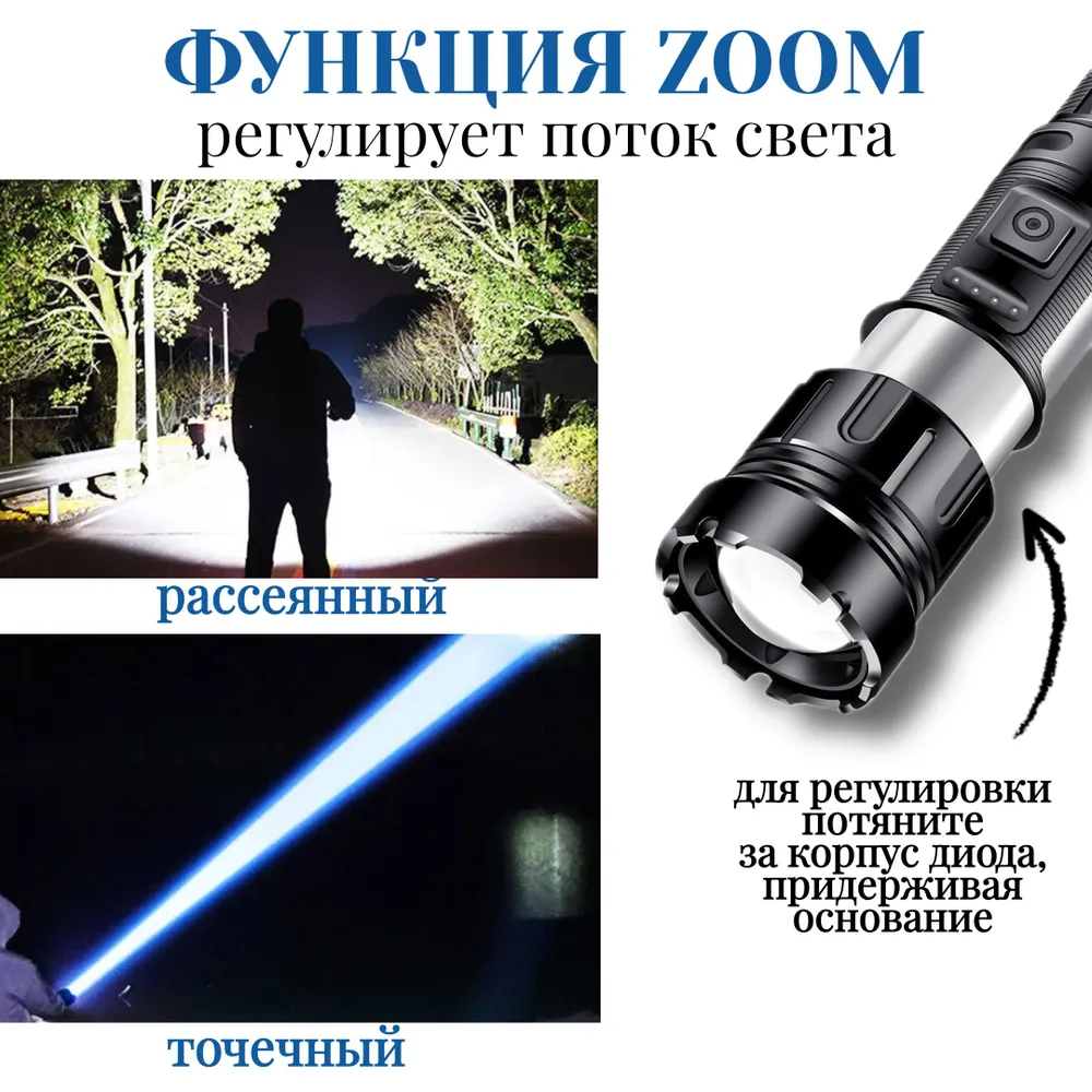 - Фонарь можно использовать в качестве Power Bank для зарядки гаджетов.