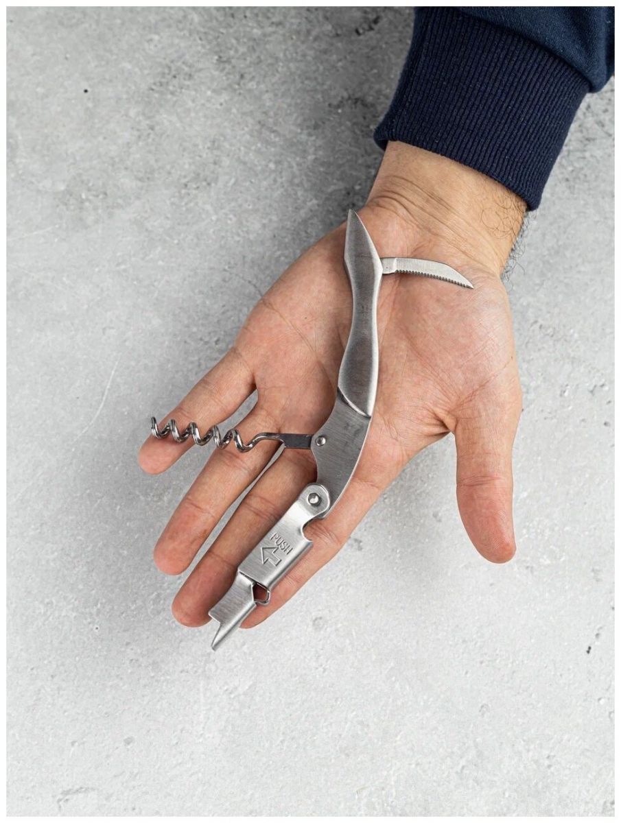 Для надрезания фольги предусмотрена выкидная дугообразная пилка. Также на корпусе имеется открывалка для бутылок. С элегантной легкостью откройте бутылку вина, создайте неповторимую непринужденную атмосферу уютного вечера. ХарактеристикиКонструкция двухступенчатая